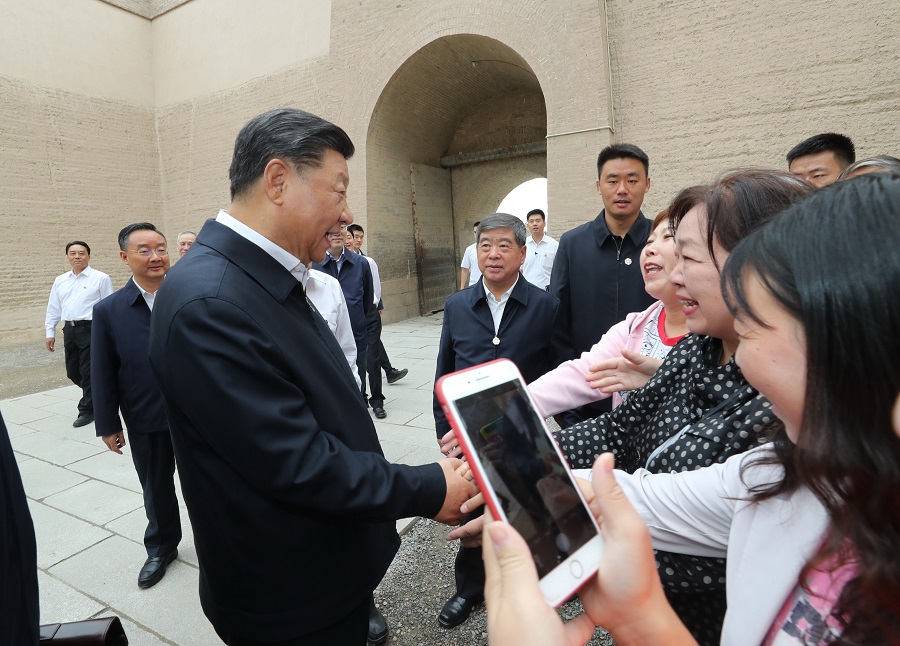 习近平总书记20日上午来到嘉峪关关城,登上城楼察看关城整体面貌,听取河西走廊长城、关隘历史文化情况介绍。