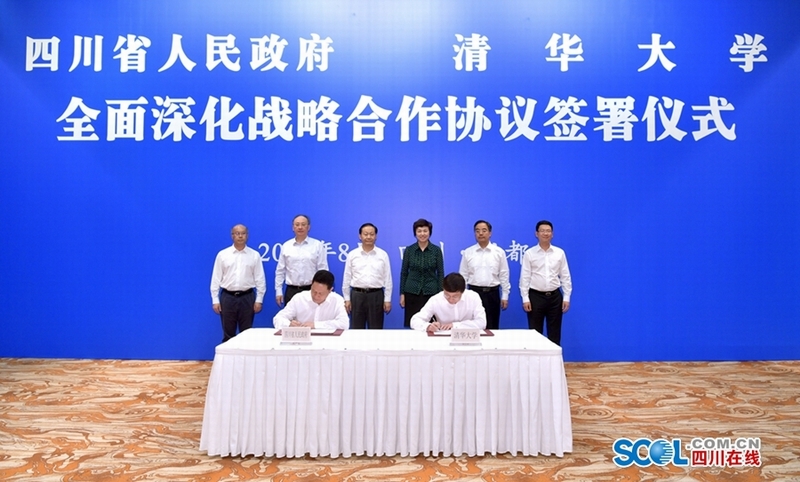 签署仪式上,省委常委、组织部部长王正谱介绍了省校合作有关情况,副省长杨兴平与清华大学党委常委许庆红分别代表双方签署全面深化战略合作协议。根据协议,双方将在圆满完成2014年四川与清华大学战略合作协议各项目标任务的基础上,进一步在做大做强清华四川能源互联网研究院、推动国家重大科技基础设施和科技专项在川集聚、共建重大产学研合作平台、加强干部人才交流与培训等方面深化合作,更好助力四川加快实施“一干多支”发展战略、建设国家创新驱动发展先行省和清华大学深化综合改革、创建世界一流大学。