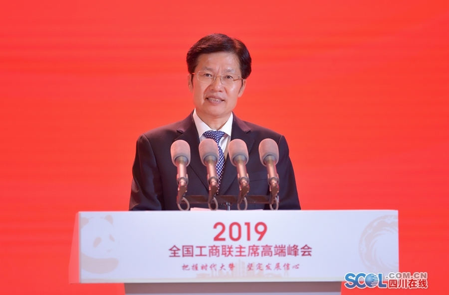 10月10日上午,以“把握时代大势·坚定发展信心”为主题的2019全国工商联主席高端峰会在成都举行。来自全国工商联和各省(区、市)工商联的代表、省内外知名民营企业家等500多名嘉宾齐聚一堂,共谋民营经济健康发展大计,共享新时代四川发展机遇。全国政协副主席、全国工商联主席、中国民间商会会长高云龙出席峰会并讲话,省委书记、省人大常委会主任彭清华致辞,中央统战部副部长、全国工商联党组书记、常务副主席徐乐江主持峰会。省政协主席柯尊平出席。