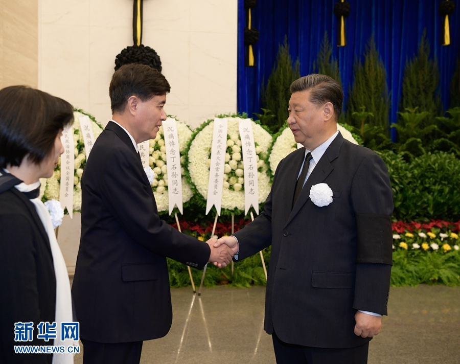 10月17日,丁石孙同志遗体在北京八宝山革命公墓火化。习近平、李克强、栗战书、汪洋、王沪宁、赵乐际、韩正、王岐山等前往八宝山送别。这是习近平与丁石孙亲属握手,表示深切慰问。