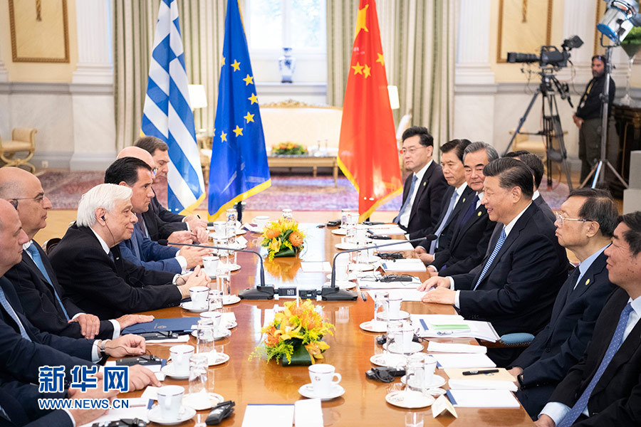 当地时间11月11日,国家主席习近平在雅典同希腊总统帕夫洛普洛斯会谈。 新华社记者 姚大伟 摄