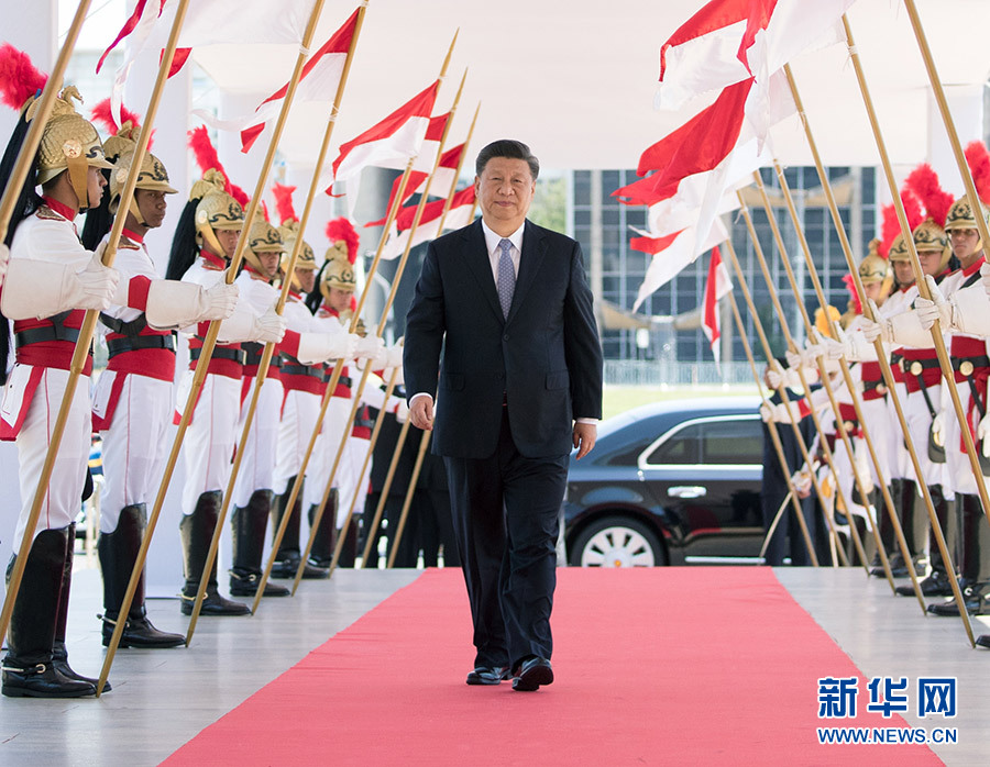 当地时间11月13日,国家主席习近平在巴西利亚同巴西总统博索纳罗会谈。这是习近平抵达会谈现场。 新华社记者 王晔 摄