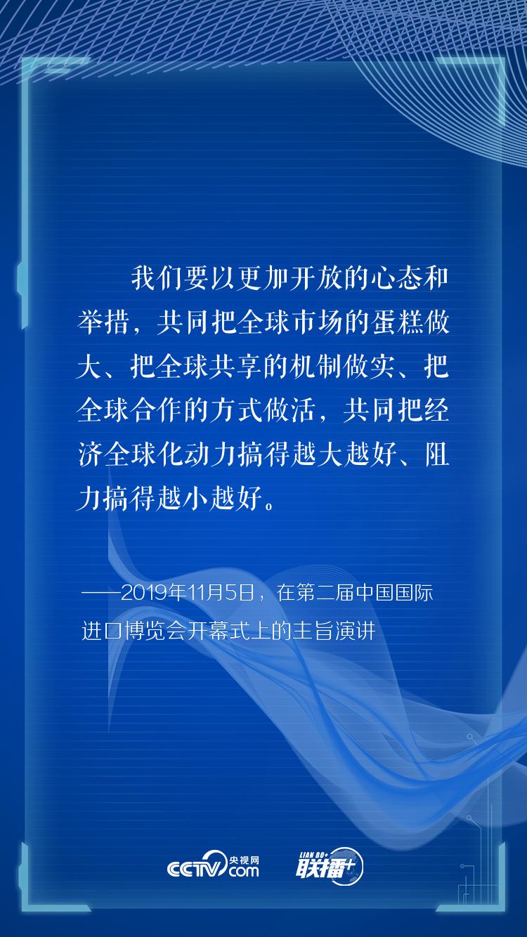 开放是当代中国的鲜明标识。“中国市场这么大,欢迎大家都来看看”“中国将张开双臂,为各国提供更多市场机遇、投资机遇、增长机遇”。习近平恳切的话语彰显了中国以实际行动推动建设开放型世界经济的责任担当。