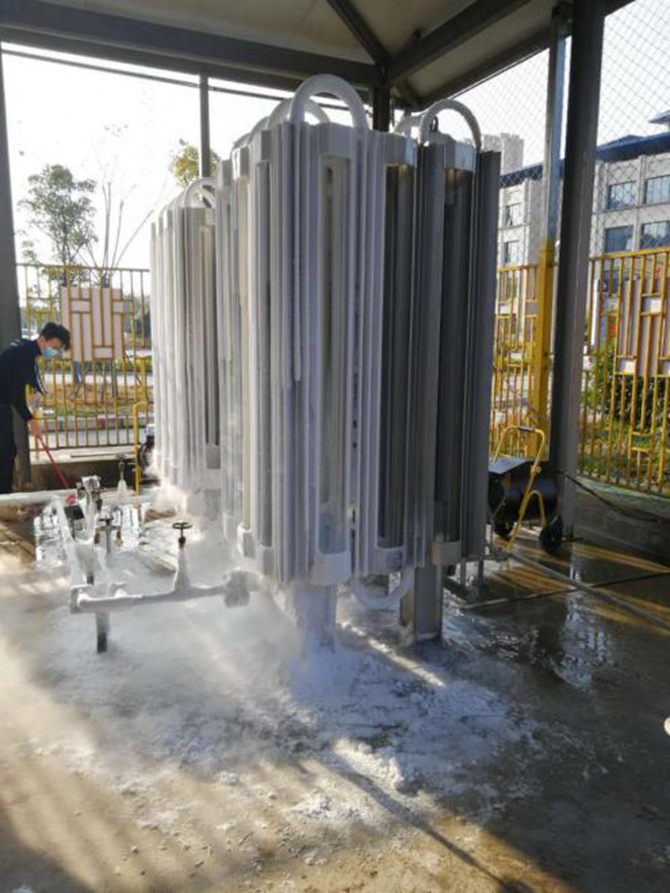 改造前,气化器和地上结霜结冰严重
