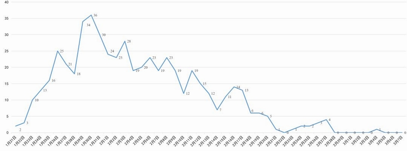 四川省新冠肺炎每日新增确诊病例变化曲线图
