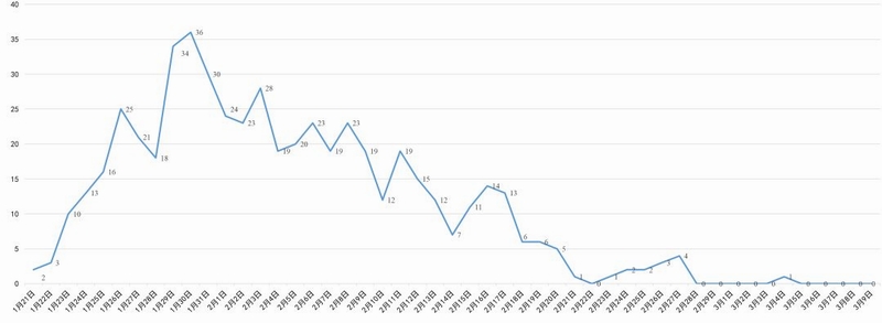 四川省新冠肺炎每日新增确诊病例变化曲线图