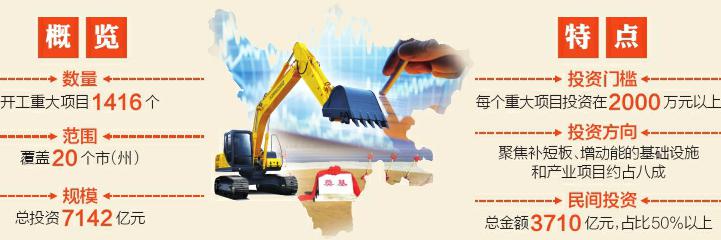 据了解,新冠肺炎疫情发生以来,省委、省政府在毫不放松抓好疫情防控的同时,创造条件有力有序推进重点项目复工开工,充分发挥领导干部联系重点项目机制作用,切实帮助施工单位解决工程车辆通行、务工人员返岗、建材供应等难题,确保复工强度尽快恢复到正常水平,形成更多实物工作量。此次集中开工的1416个重大项目,涉及基础设施、产业发展、民生及社会事业等领域,总投资达7142亿元,民间投资占全部项目总投资额的50%以上。这批项目的开工建设,将进一步扩大我省有效投资,为有效应对疫情对我省经济社会发展的影响,实现全年经济社会发展预期目标提供有力支撑。
