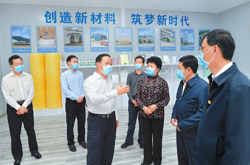 四月十六日,省委书记彭清华到达州市宣汉正原微玻纤公司调研,了解当地打造微玻纤产业集群和企业复工复产、达产满产状况。本报记者欧阳杰摄