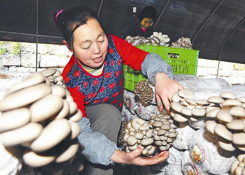 12月1日,南江县南江镇黄金村村民忙着在大棚中采摘平菇。肖定怀 摄