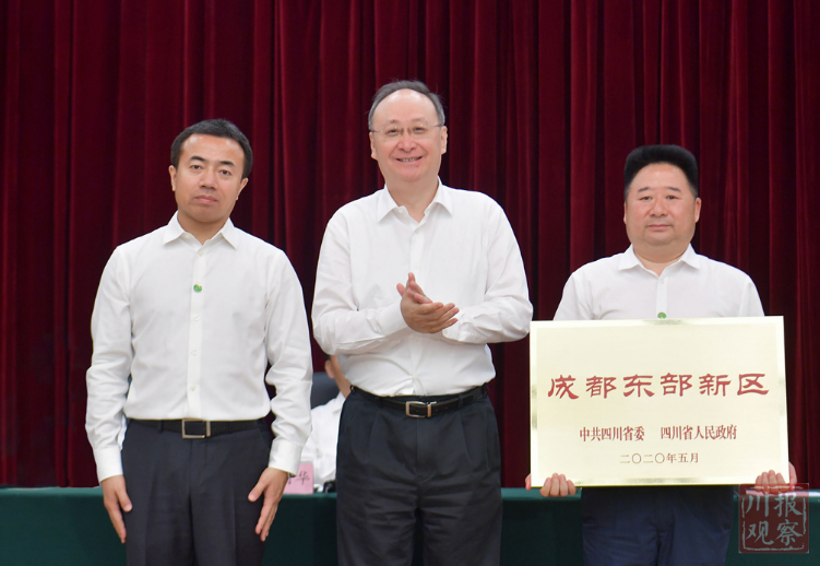 省委副书记、省长尹力代表省委、省政府为成都东部新区授牌。省委副书记邓小刚出席。