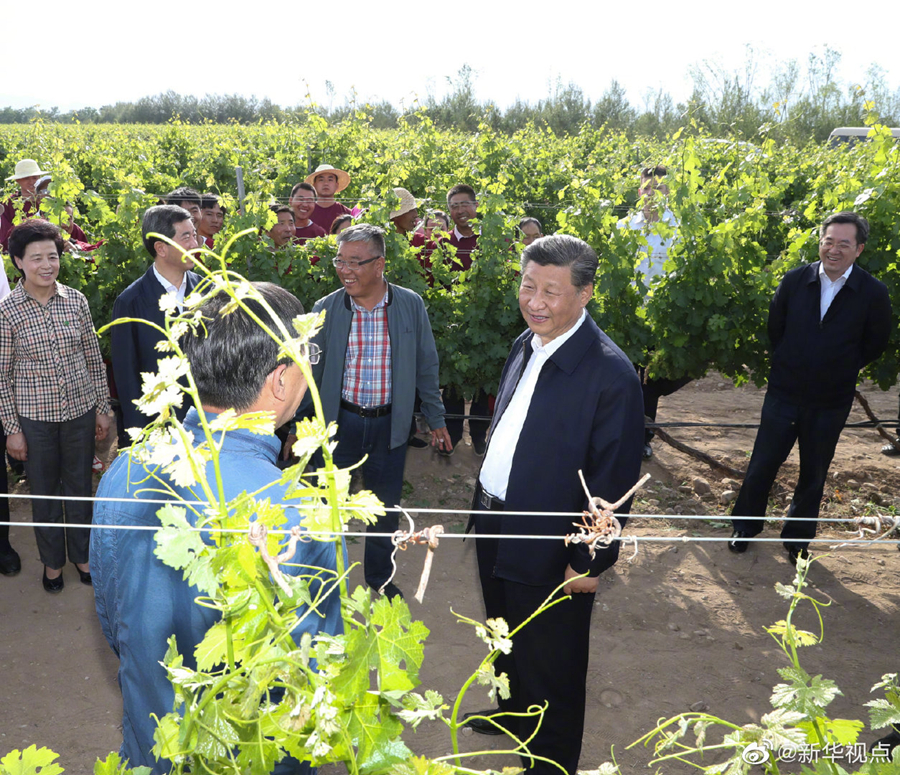 习近平总书记9日在银川考察调研。他先后来到贺兰县稻渔空间乡村生态观光园、贺兰山东麓葡萄种植园,了解当地发展特色农业产业、加强贺兰山生态保护等情况。