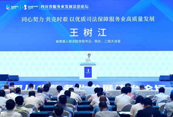 四川新闻网成都6月10日讯(记者 文骥 摄影报道)6月10日,作为全省服务业发展大会的重点配套活动之一,四川省服务业发展法治论坛在成都正式开幕。据悉,该论坛由省委政法委、省法学会主办,省高级人民法院、省人民检察院、公安厅、司法厅、省国资委、省工商联、省律师协会、省川商总会协办,旨在深入贯彻落实全省服务业发展大会精神,营造支持保障服务业发展的法治氛围,推动全省服务业高质量发展。