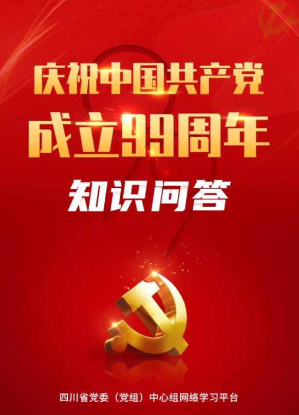 为庆祝中国共产党成立99周年,营造良好的学习氛围,更好激励四川广大党员干部群众,为奋力推动治蜀兴川再上新台阶、实现“两个一百年”奋斗目标和中华民族伟大复兴的中国梦贡献力量,四川省党委(党组)中心组网络学习平台特推出“庆祝中国共产党成立99周年知识问答”活动。