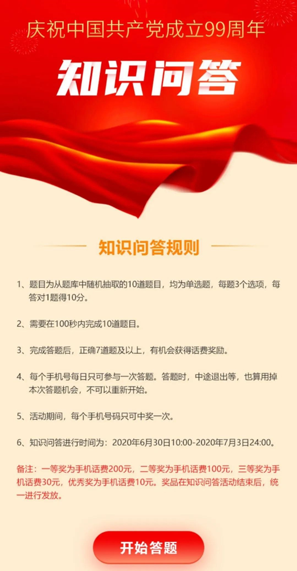 等你来挑战!庆祝中国共产党成立99周年知识问答来了