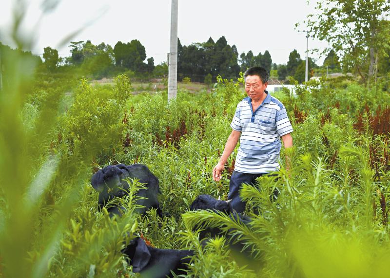 在四川乐至县金鼓村,村民杨老汉在放羊(6月12日摄)。 新华社记者 王曦 摄