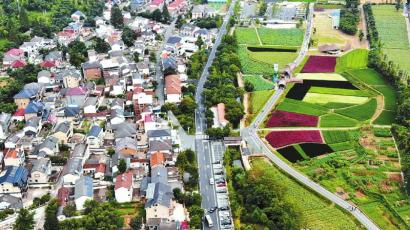 曾经的余村是黑色的,因为办矿山,整个村庄烟尘滚滚,炮声隆隆;后来矿山关停,余村慢慢变成了绿色;而如今的余村,是彩色的。因为它不仅有绿色的山川,还有紫色、红色的稻田,有金黄的向日葵。