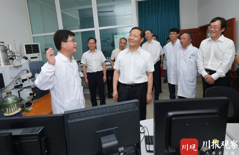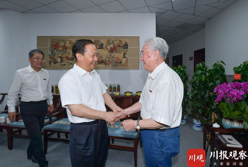 随后,前往成都中医药大学温江校区博物馆、西南特色中药资源重点实验室,看望著名温病学家张之文教授、中药药理学家曾南教授,了解学校教育教学工作和国家中药种质资源库建设等情况。