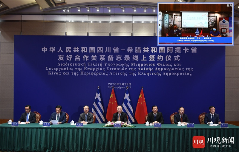 帕图里斯感谢中国在抗击新冠肺炎疫情中给予希腊的帮助。他说,中国是东方伟大的国家,四川是中国一个快速发展的省份,与阿提卡省有许多相似之处,此次合作备忘录的签署象征着我们两个伟大国家,两个重要地区的友谊和团结进一步得到加强,必将引领双方关系走向更加光明的未来,有力推动双方开展更广领域更深层次的务实合作,结出更多共赢硕果,更好促进两地发展、造福两地人民。