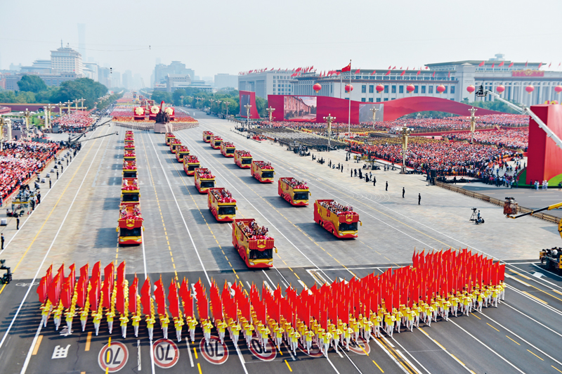 2019年10月1日上午,庆祝中华人民共和国成立70周年大会在北京天安门广场隆重举行。这是“致敬”方阵。 新华社记者 徐昱/摄