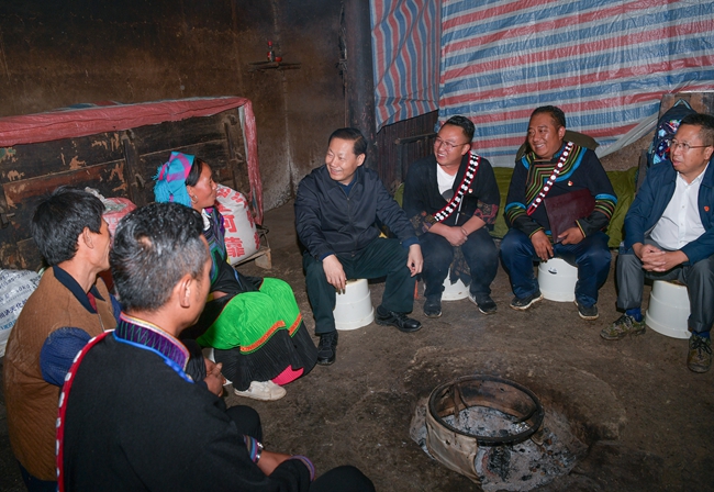 2019年6月28日,四川省委书记彭清华到凉山州金阳县甲依乡宝岩村调研深度贫困村脱贫攻坚工作推进情况,与部分贫困群众、村组干部、帮扶干部座谈,仔细询问贫困户精准识别、产业发展、外出务工、孩子就学、医疗保障及脱贫政策落实等情况。川观新闻记者 欧阳杰 摄