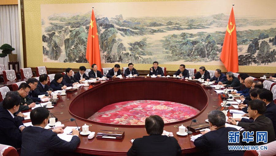 12月28日至29日,中共中央政治局召开专题民主生活会,对照检查践行“三严三实”情况,讨论研究加强党风廉政建设措施。中共中央总书记习近平主持会议并发表重要讲话。新华社记者李学仁摄