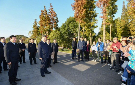 11月12日至13日,中共中央总书记、国家主席、中央军委主席习近平在江苏考察。这是12日下午,习近平在南通市五山地区滨江片区考察时,同市民群众亲切交流。新华社记者 谢环驰摄