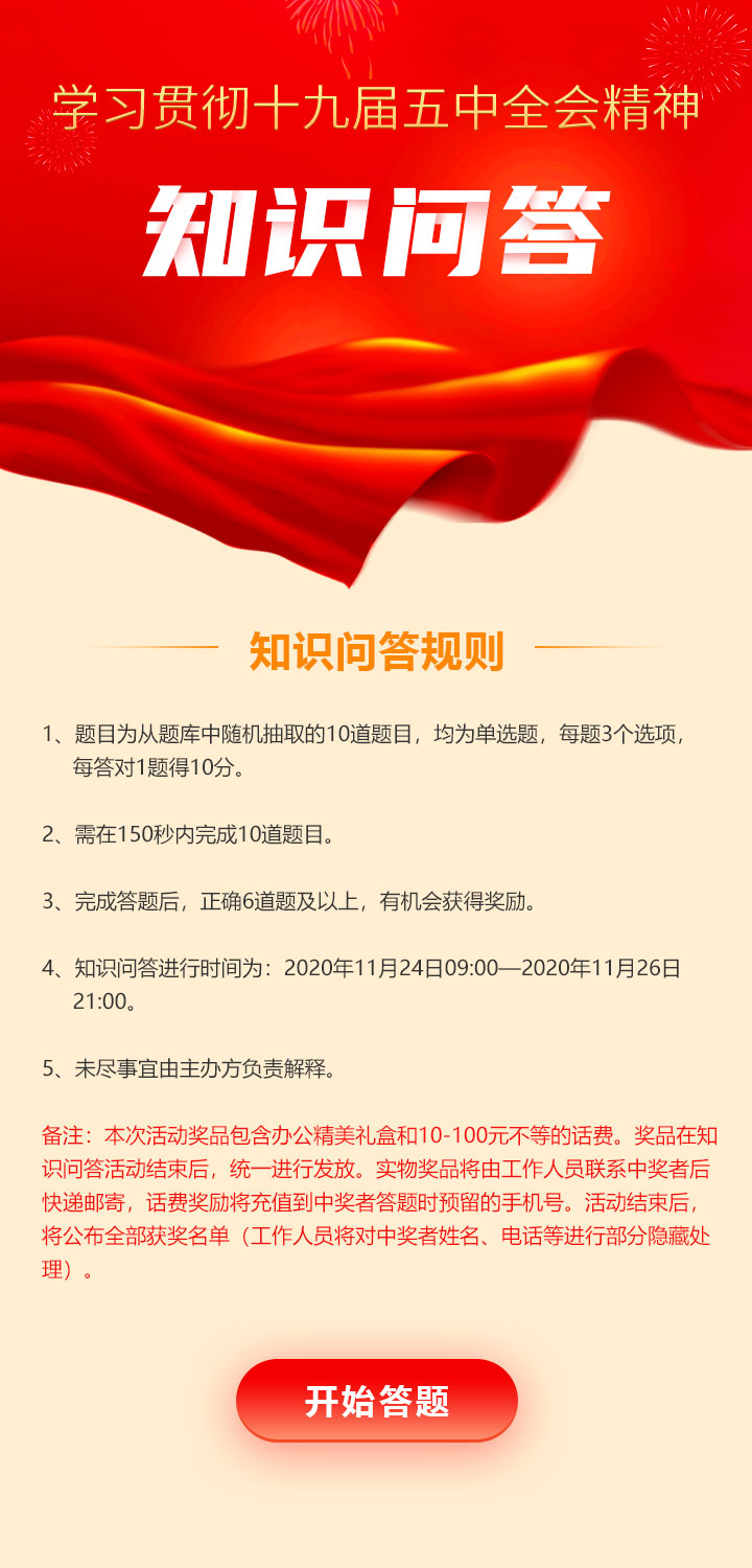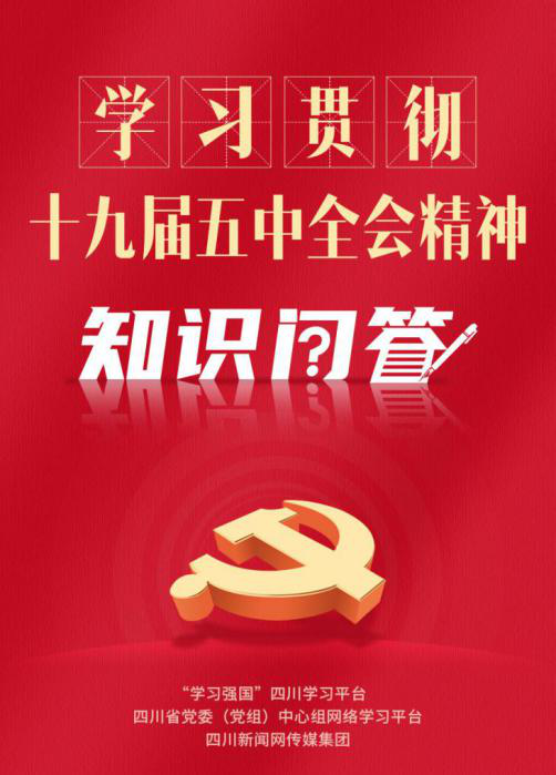 为深入学习贯彻习近平新时代中国特色社会主义思想和党的十九届五中全会精神,检验、提升四川广大党员干部的学习成果,助推全会精神在四川落地生根,“学习强国”四川学习平台联合四川省党委(党组)中心组网络学习平台、四川新闻网传媒集团特推出“学习贯彻十九届五中全会精神知识问答”活动。