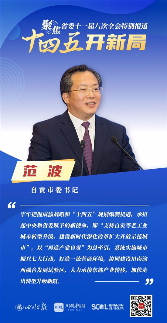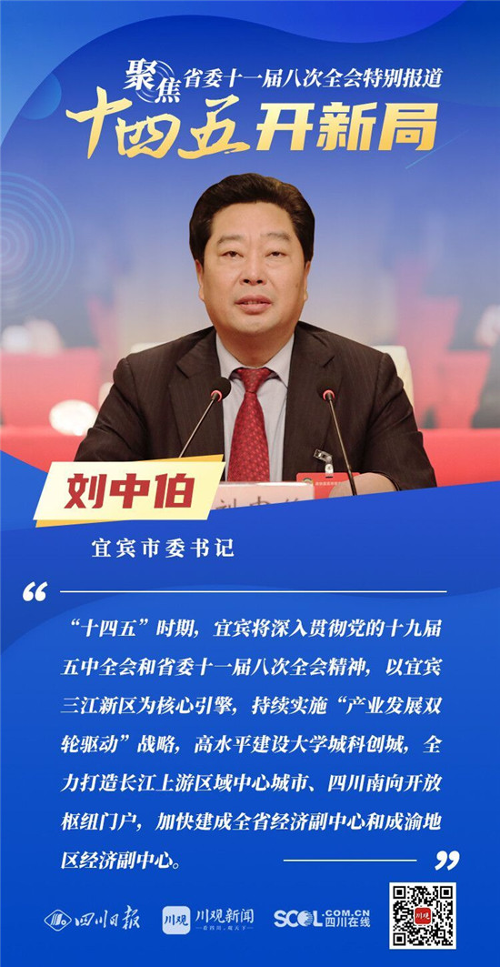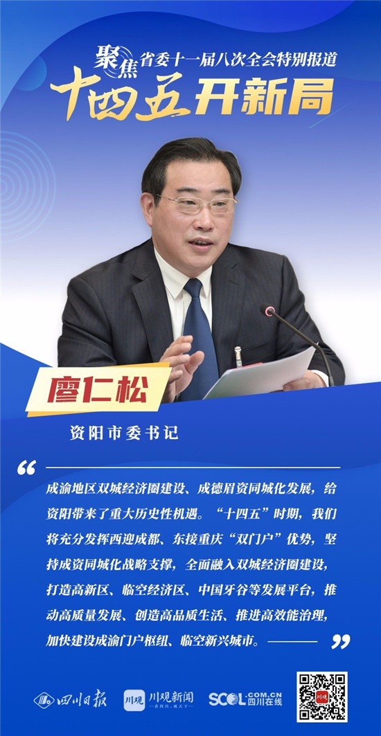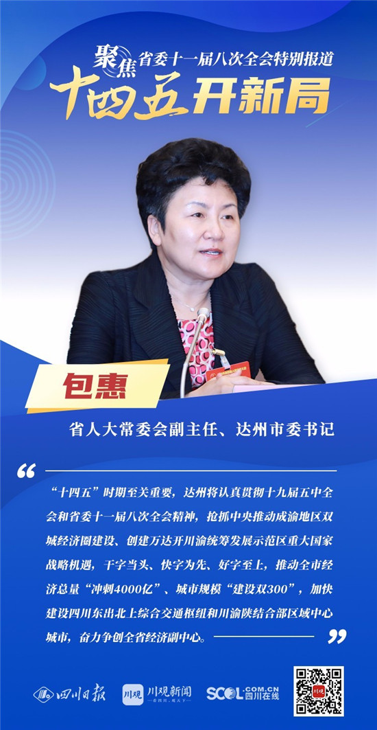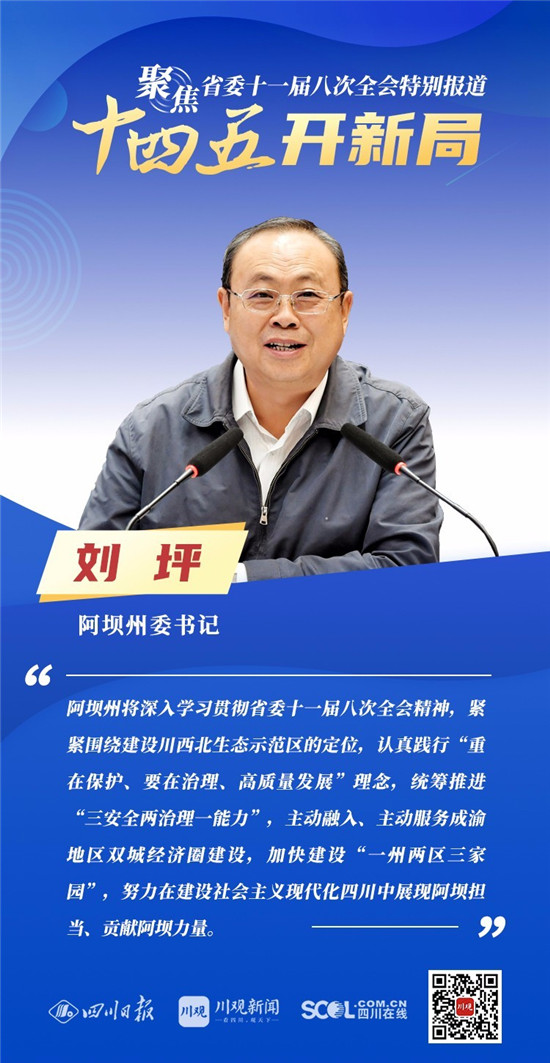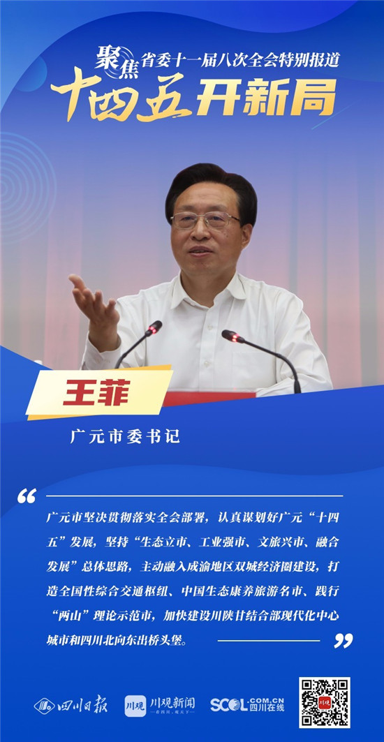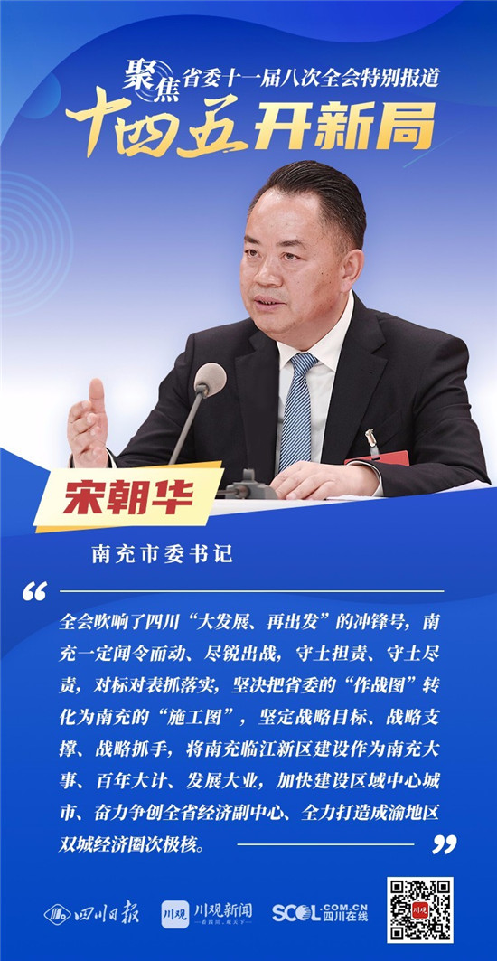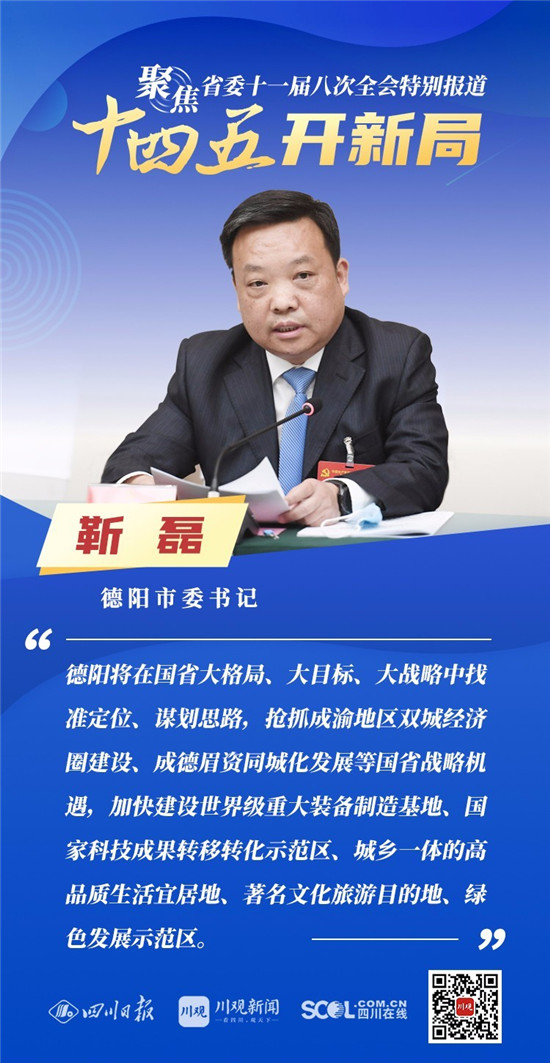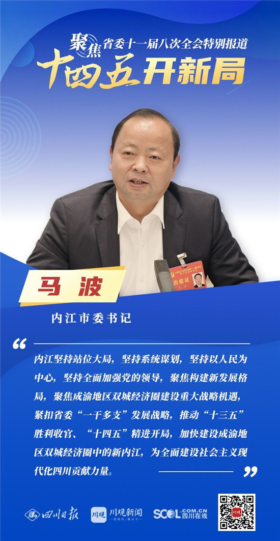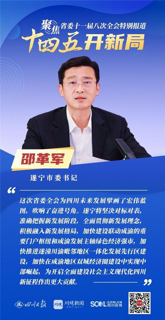 12月3日,中共四川省委十一届八次全会在成都开幕,全会将深入学习贯彻党的十九届五中全会精神,审议《中共四川省委关于制定四川省国民经济和社会发展第十四个五年规划和二〇三五年远景目标的建议(讨论稿)》,为未来5年乃至更长时期四川发展谋划新蓝图 。