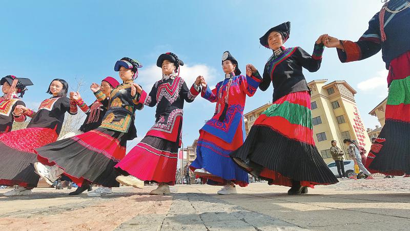 人还没到达沐恩邸社区广场,阵阵欢快的音乐声就传来了。走近一看,近百名彝族群众和游客牵手围成一圈,踏着歌声来回跳舞。“我们跳起达体舞就是要庆祝脱贫,感恩来之不易的新生活,欢庆彝家传统节日彝历新年。”社区居民热烈阿洛说。