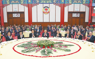 在京中共中央政治局委员、中央书记处书记,全国人大常委会、国务院部分领导同志,全国政协领导同志和曾任全国政协副主席的在京老同志出席茶话会。