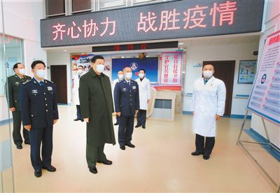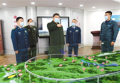 中华民族传统节日春节即将来临之际,中共中央总书记、国家主席、中央军委主席习近平2月4日视察空军航空兵某师,看望慰问部队官兵,代表党中央和中央军委,向全体人民解放军指战员、武警部队官兵、军队文职人员、民兵预备役人员致以诚挚问候和新春祝福。这是习近平到场站医院了解部队疫情防控和支援地方防疫情况。