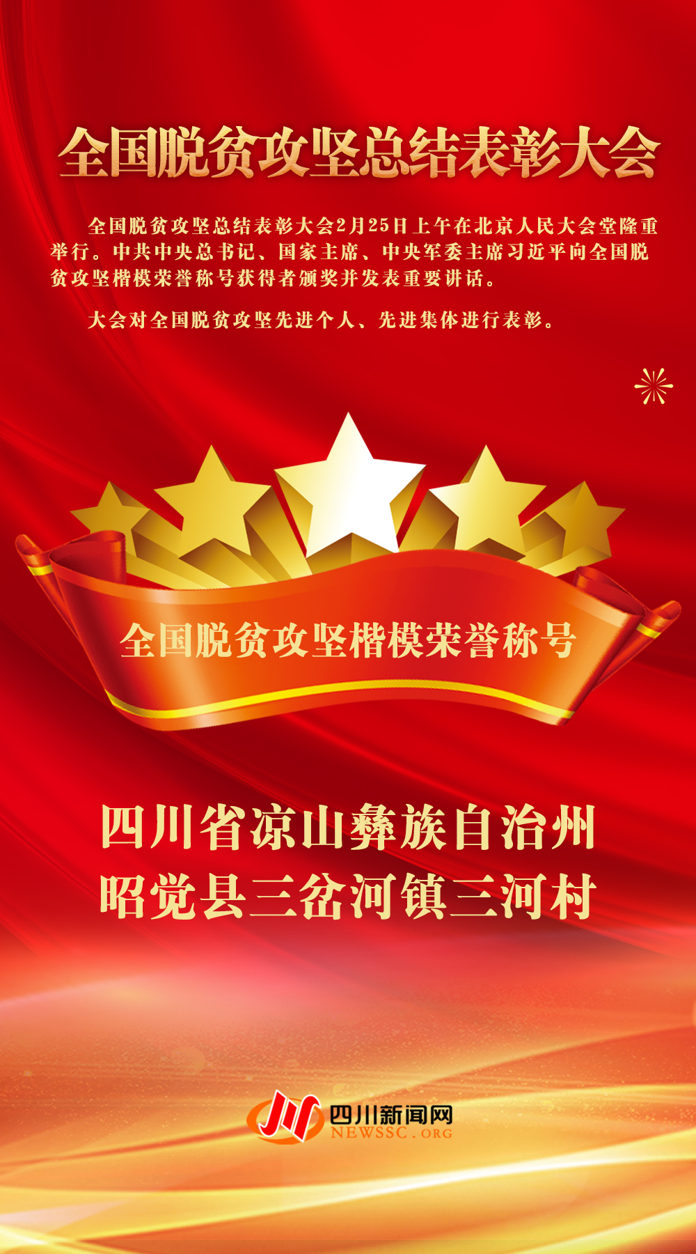 10个集体获全国脱贫攻坚楷模荣誉称号,其中四川省凉山彝族自治州昭觉县三岔河镇三河村光荣上榜。