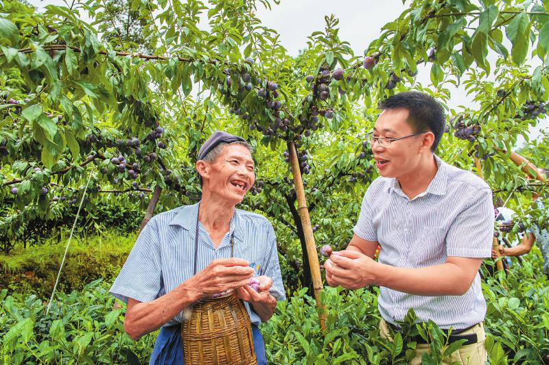 洪雅县将军镇保坪村贫困户周华付(左)种植的脆红李喜获丰收。 何泽琼摄