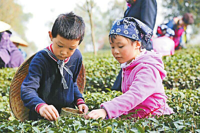 孩子们在成都市蒲江县成佳茶乡体验茶叶采摘乐趣。 刘杨摄