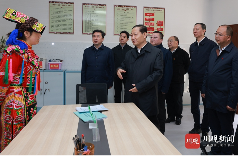 3月23日,省委书记彭清华到平武县锁江羌族自治乡黄坪村调研,在村便民服务室了解三村合并后为群众提供便民服务情况。