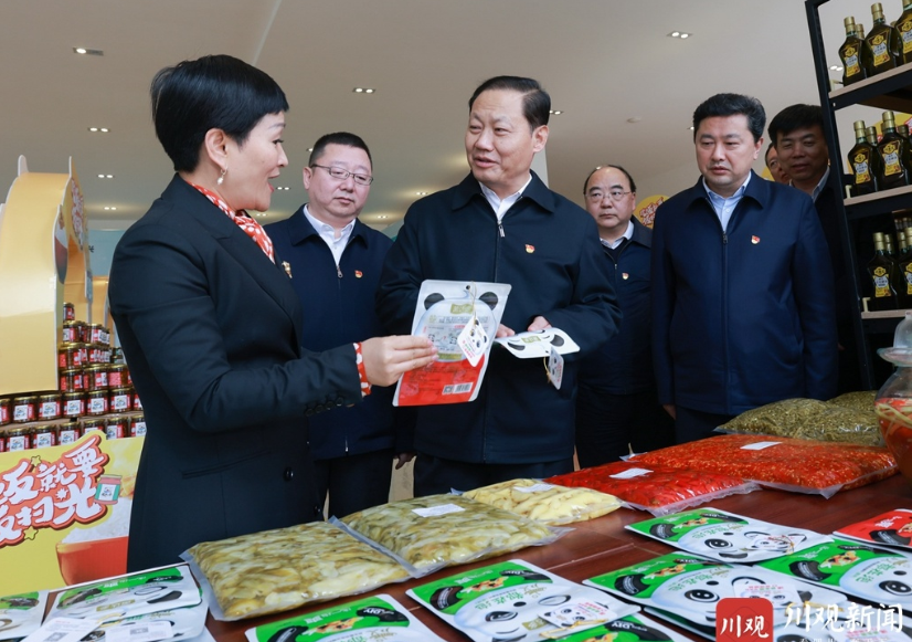 梓潼县福欣食品公司采用“公司+合作社+农户”经营模式,去年收购蔬菜等原材料5000余吨、就地发展原材料供应基地1200余亩,直接带动3500多户农民增收致富,彭清华对此给予肯定。