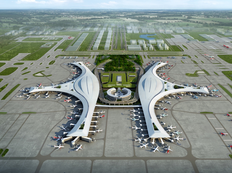 天府机场是我国“十三五”期间规划建设的最大民用运输机场,一期建设“两纵一横”3条跑道、71万平方米的航站楼以及相应的配套设施,满足年旅客吞吐量6000万人次、货邮吞吐量130万吨的需求。远期规划建设“四纵两横”6条跑道,140万平方米的航站楼,满足年旅客吞吐量1.2亿人次、货邮吞吐量280万吨的需求。