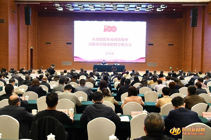 在当天的宣讲报告会上,王承先紧紧围绕学习领会习近平总书记在党史学习教育动员大会上的重要讲话精神和关于党的历史的重要论述,从“党史是什么”、“学习宣传党史怎么办”两个层面进行了深入宣讲。围绕学好用好党史基本著作,他系统回顾了百年来我们党团结带领人民走过的光辉历程、取得的历史性成就。王承先全面介绍了开展党史学习教育的主要内容和必须深刻把握的重点。他强调,要进一步学懂弄通做实习近平新时代中国特色社会主义思想,坚定理想信念,弘扬艰苦奋斗精神,传承光荣传统和优良作风,坚持自我革命,在新征程中不断谱写治蜀兴川时代新篇,以优异成绩庆祝建党100周年。
