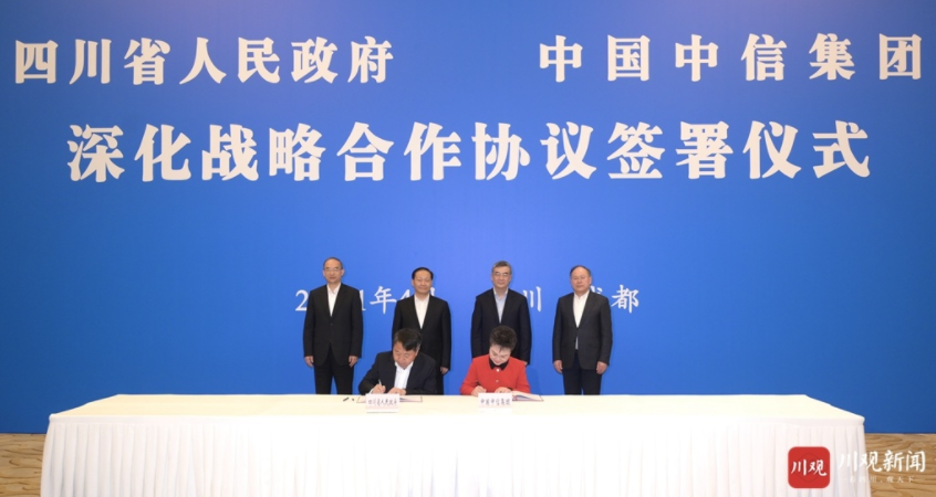 协议签署仪式上,省政府秘书长胡云简要介绍了协议有关情况,副省长罗文与中信集团副总经理李庆萍分别代表双方签署深化战略合作协议。根据协议,“十四五”期间,中信集团将把四川作为重要的战略合作投资发展区域,进一步加大在川投资力度,与我省在金融综合服务、城市基础设施建设和综合开发、先进制造、节能环保、文化旅游、医疗健康等领域深化合作,更好助力四川经济高质量发展。自贡市、泸州市、广元市、四川发展集团等还分别与中信集团旗下有关企业签署战略合作协议。