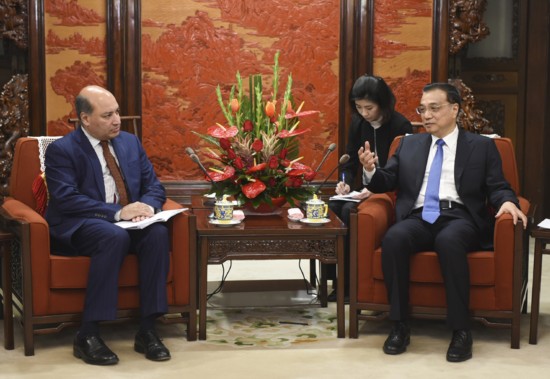 1月15日,国务院总理李克强在北京中南海紫光阁会见欧洲复兴开发银行行长查克拉巴蒂。新华社记者 谢环驰 摄