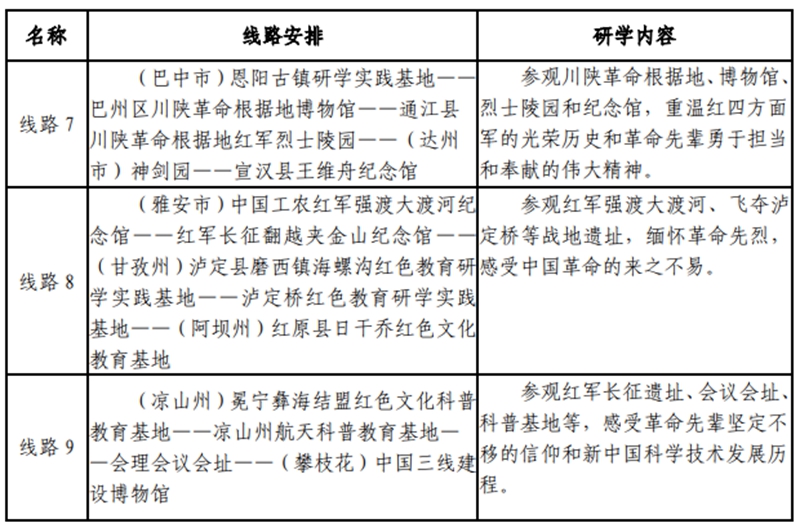 四川省中小学红色教育研学精品线路
