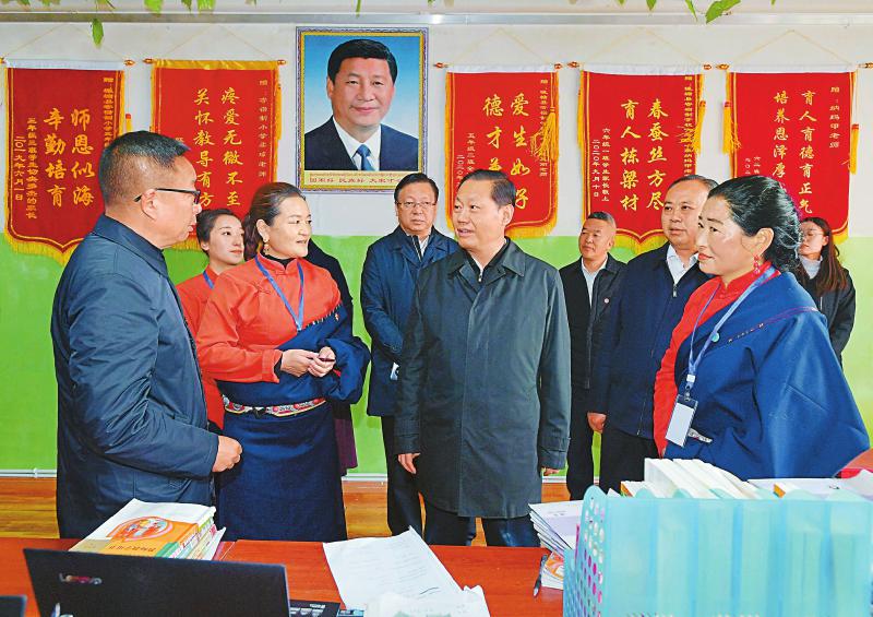 四月二十八日,省委书记彭清华到壤塘县寄宿制小学调研,详细询问师资队伍建设、教学质效提升、国家通用语言文字教学推行等情况。四川日报全媒体记者欧阳杰摄
