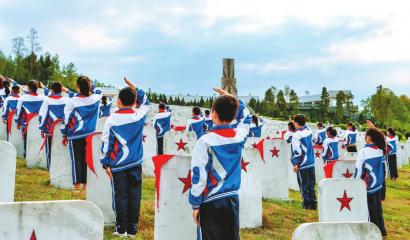 通江县实验小学学生在川陕革命根据地红军烈士陵园祭奠先烈。