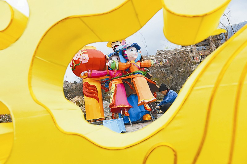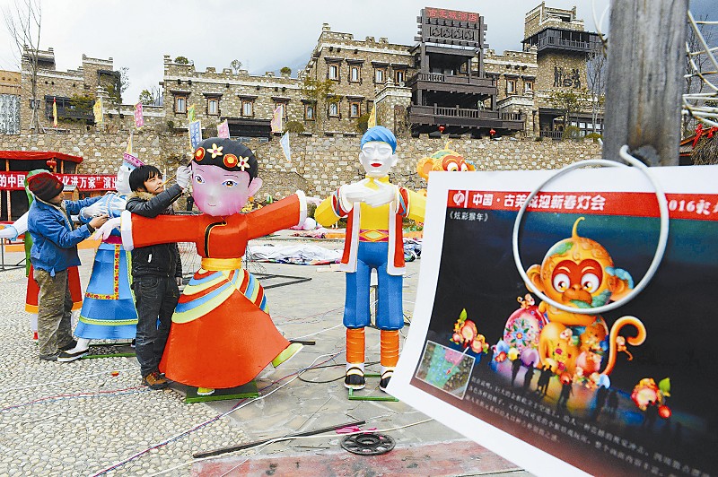 阿坝州茂县将于2月4日至3月8日推出中国古羌城首届迎新春灯会。40组原创灯组将以藏羌回汉文化为基本元素,以彩灯为载体,重点展示羌绣、藏族祥巴、藏羌历史传说等藏羌非遗文化。目前,100多名制灯艺人正在加紧焊接彩灯骨架,描画裱糊好的彩灯。 本报记者 李向雨 摄