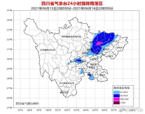 (图片来自四川省气象服务中心、四川省水利厅、四川省自然资源厅)四川新闻网成都6月15日讯(记者 王滟雨)6月15日,四川省气象台发布暴雨蓝色预警:6月15日20时到16日20时,广元、绵阳、德阳3市,巴中、南充、遂宁、眉山、宜宾5市西部和乐山、成都2市东部有大雨到暴雨(雨量40~70毫米),其中广元南部、绵阳东部、南充西部局地有大暴雨(雨量100~120毫米),并伴有雷暴大风等强对流天气。