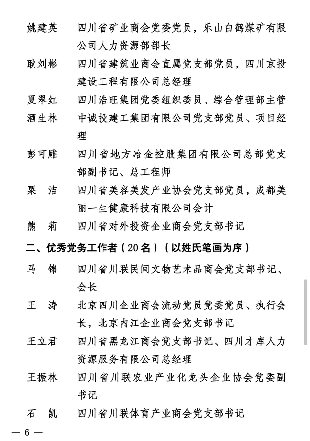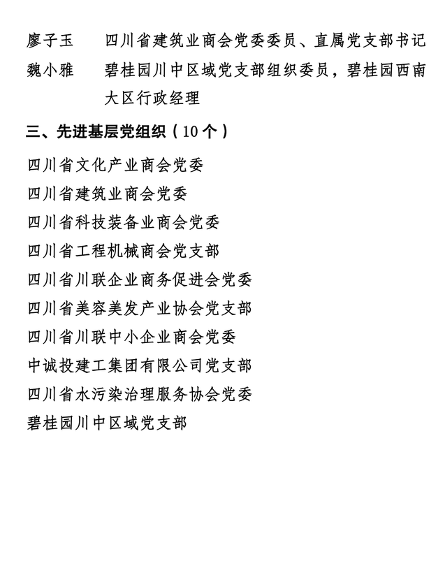 四川省工商联相关负责人表示,希望受表彰的先进集体和优秀个人再接再厉,继续发挥模范带头作用,为新时代全面加强直属商协会党的建设、推动四川民营企业高质量发展作出新的更大的贡献。直属商协会联合党委各级党组织和广大党员要以受表彰的先进典型为榜样,不忘初心、牢记使命,锐意进取、担当作为,振奋精神、争创一流,为促进“两个健康”、推动四川现代化建设而努力奋斗。