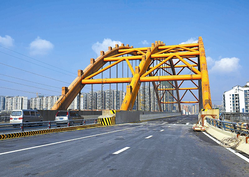 1月21日,成都市青龙场立交高跨桥提前完成大修加固工程。该高跨桥将在红星路整体改造工程完毕后,与红星路同步通车。据介绍,青龙场立交高跨桥加固维修内容20余项,钻孔植筋63万多根,梁体加固用了钢板、碳纤维板、碳纤维布近万条。为防止车辆噪音扰民,桥上还加装了1200米隔音屏。本报记者 肖雨杨 摄