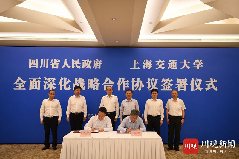 7月8日,四川省人民政府与上海交通大学在成都签署全面深化战略合作协议。省委副书记、省长黄强会见上海交通大学党委书记杨振斌一行,并共同出席协议签署仪式。