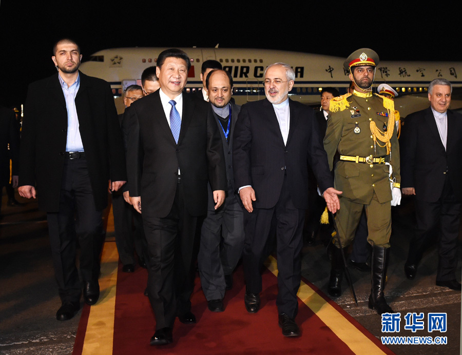 1月22日,国家主席习近平乘专机抵达伊朗首都德黑兰,开始对伊朗进行国事访问。这是在梅赫拉巴德机场,习近平受到伊朗外交部长扎里夫等热情迎接。新华社记者 饶爱民 摄