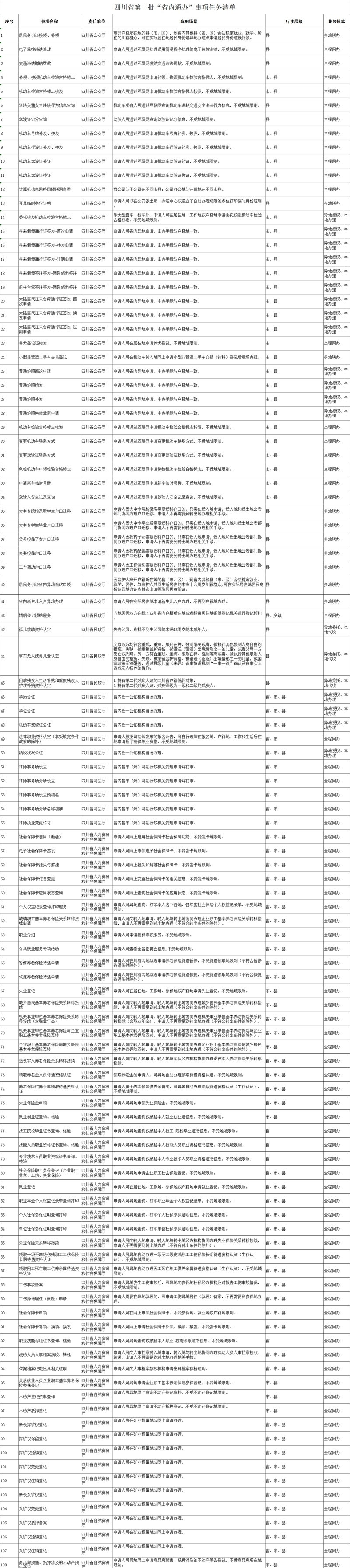 近日,为方便企业群众在省内跨区域办事,四川省大数据中心印发了《四川省第一批“省内通办”事项任务清单》。